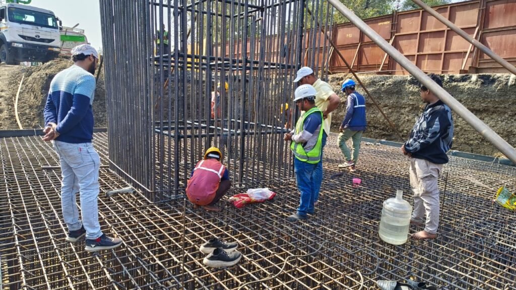 The abutment foundation forms a vital structural component of the flyover, providing stability and load transfer for the superstructure. Reinforcement fixing and foundation preparation activities are currently in progress, executed as per approved drawings, technical specifications, and quality control standards.